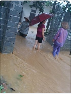 | Gần KCN Lương Sơn nước ngập cả taxi. |