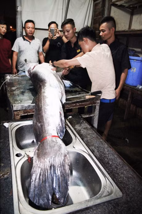 Con cá lăng đen khủng được một nhà hàng ở Hà Nội mua về phục vụ khách