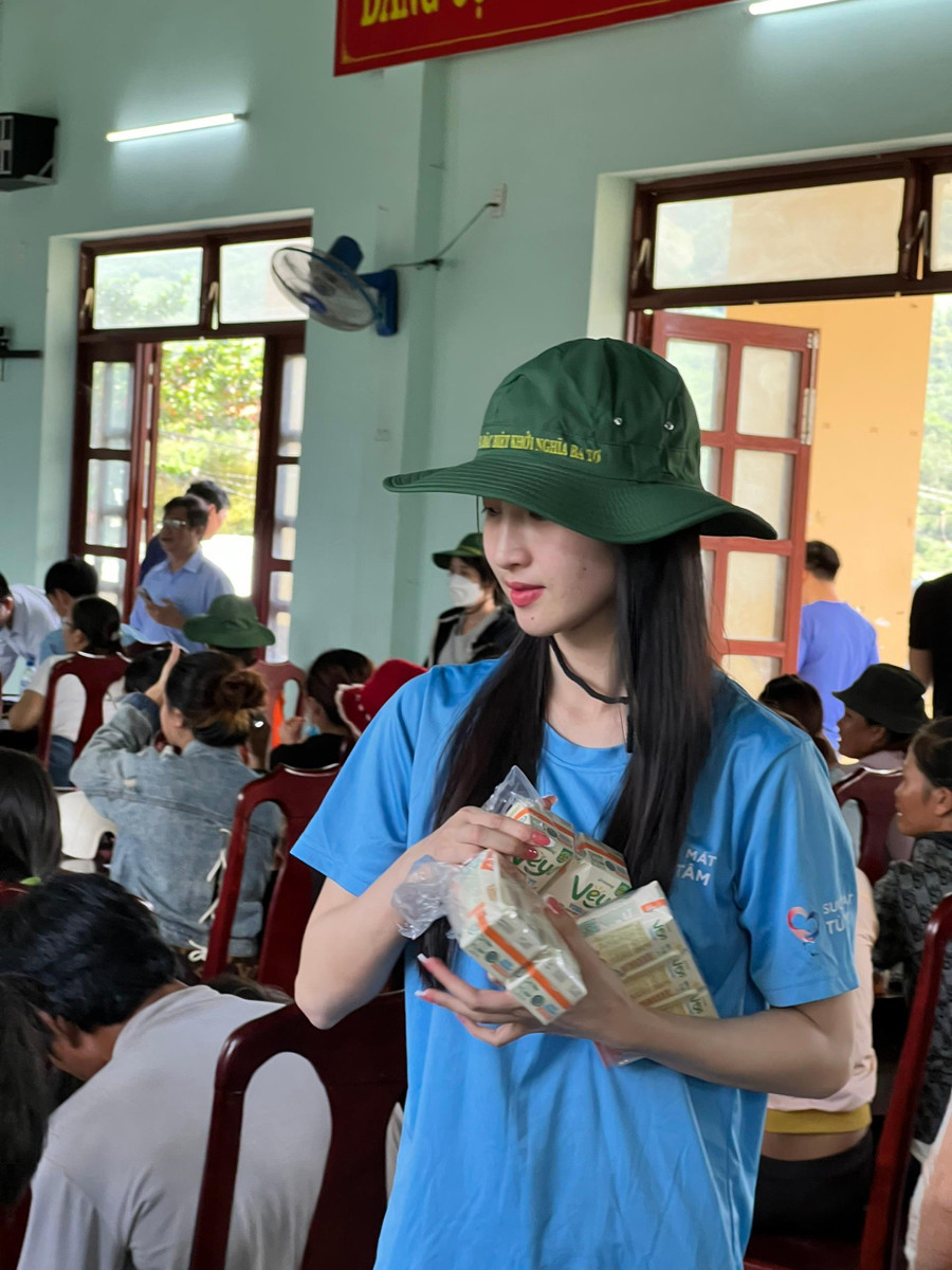 | Hoa hậu Thùy Tiên tạm gác lịch trình riêng để vào miền Trung hỗ trợ người dân khó khăn. |
