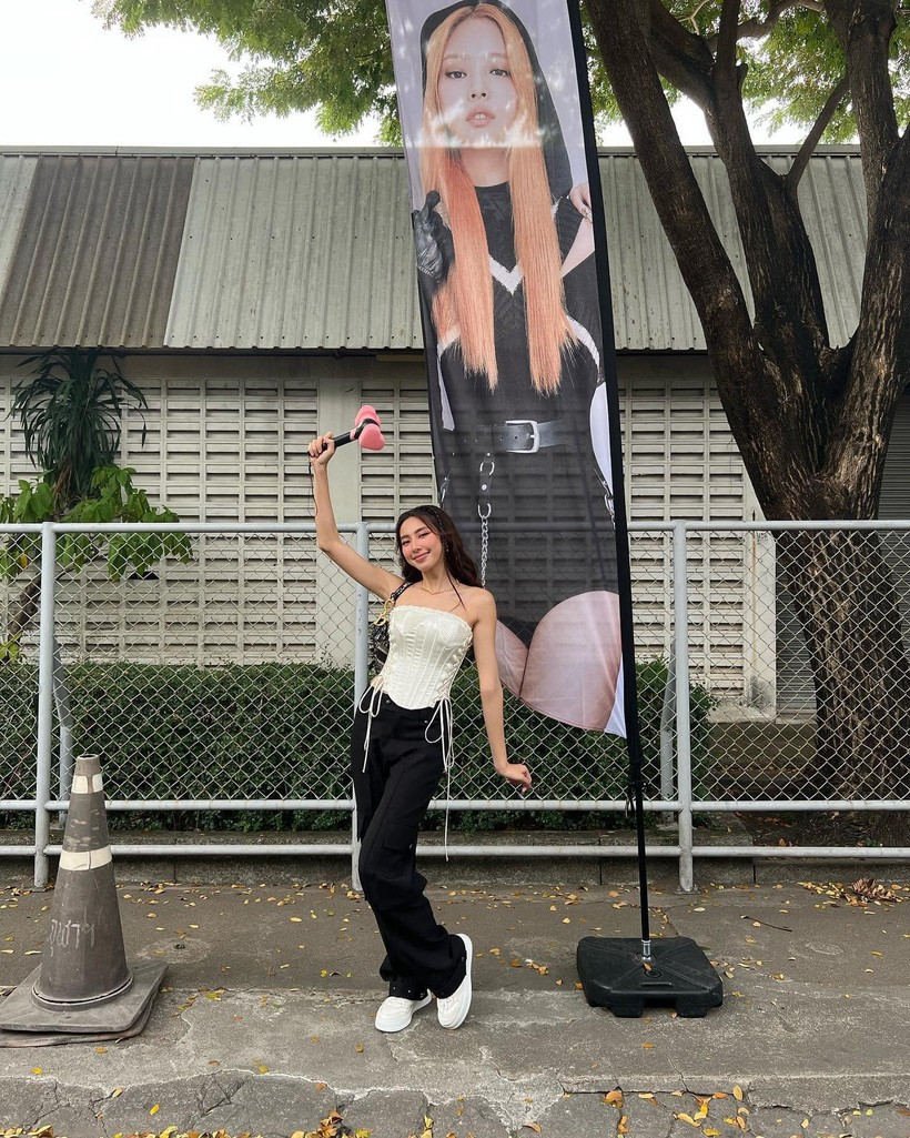Không chỉ vậy trên trang cá nhân, Thùy Tiên còn dí dỏm viết: "Thành viên thứ 5 BLACKPINK tới hơi trễ". Không chỉ nhận mình là "thành viên thứ 5" của nhóm nhạc nổi tiếng, Thùy Tiên còn mua vé VIP, hào hứng cầm lightstick hình chiếc búa chụp kỷ niệm với ảnh của Jennie.