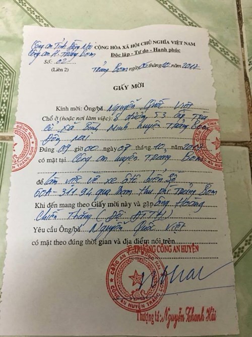 Giấy mời tài xế đến làm việc vì qua trạm BOT Biên Hòa.