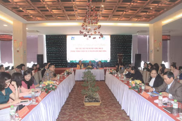 Toàn cảnh  hội thảo “Tiếp sức cho phụ nữ xây dựng nhà ở PTTT từ nguồn vốn quay vòng”