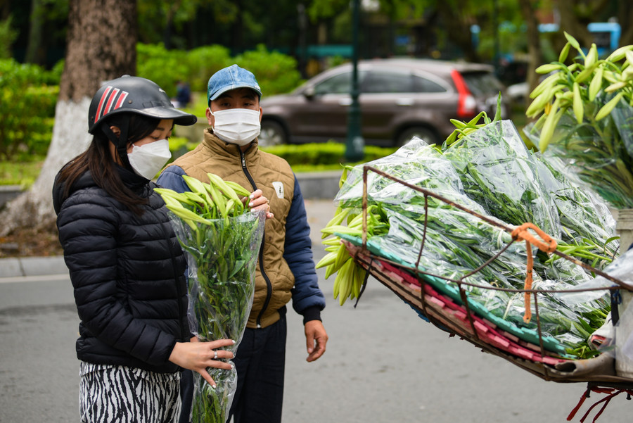 Đi khắp các con phố Hà Nội như: Thụy Khuê, Phan Đình Phùng, Láng Hạ, Thanh Niên, Giảng Võ... vào thời điểm này, không khó để bắt gặp những chiếc xe đạp chở đầy hoa loa kèn đầu mùa. Nhiều bạn trẻ, cả những người già không bỏ lỡ cơ hội lưu lại khoảnh khắc đẹp như thơ của Hà Nội bên những cành hoa loa kèn.