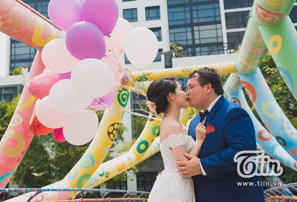 Vì chênh lệch ngoại hình, hai người rất khó để mặc đồ đôi nên trong bộ ảnh cưới chụp tại Singapore, Darren phải đặt áo thể thao in tên hai người để làm đồ đôi. Điều này khiến cho cả hai bạn có những tấm hình không lẫn vào đâu được.