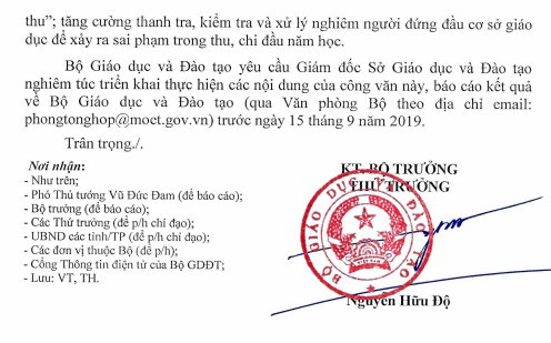 Hướng dẫn các cơ sở giáo dục thực hiện công khai các khoản thu, chi đầu năm học theo đúng các quy định hiện hành; không để xảy ra tình trạng “lạm thu”; tăng cường thanh tra, kiểm tra và xử lý nghiêm người đứng đầu cơ sở giáo dục để xảy ra sai phạm trong thu, chi đầu năm học.