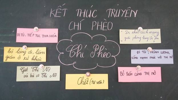 Đầu tiên giáo viên yêu cầu học sinh nghĩ ra tất cả các khả năng có thể để giúp Chí Phèo không chết, sau đó ghi lên giấy màu dán lên bảng. Học sinh có thể đưa ra các khả năng sau: