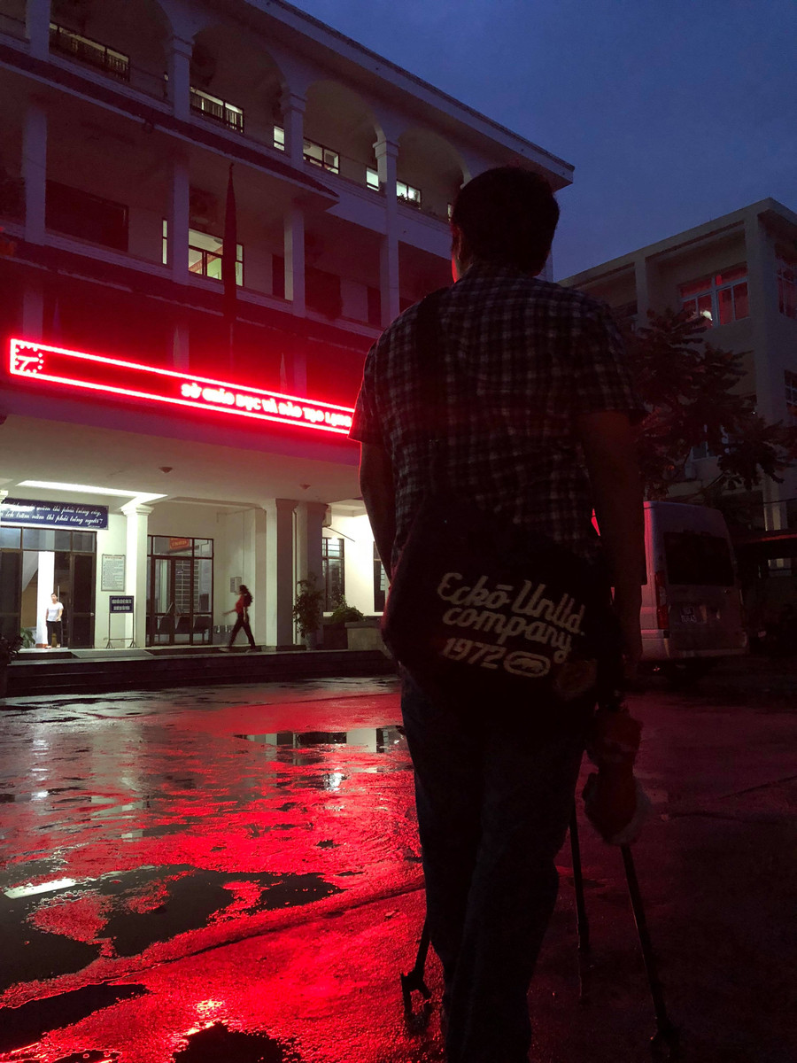 | Hình ảnh người mang đồ ăn cho tổ công tác tối 19/7 được 1 phóng viên truyền hình ghi lại |