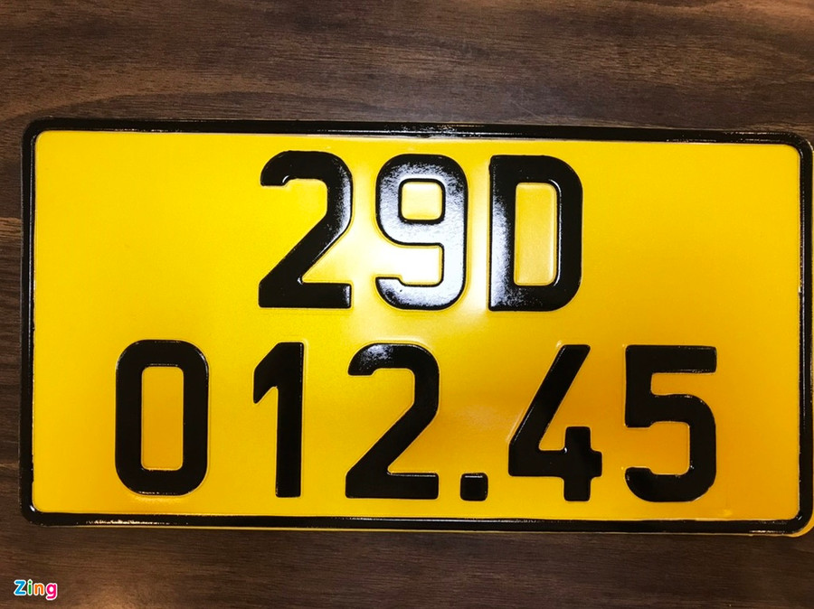 | Mẫu biển số xe nền vàng, chữ và số màu đen sẽ được áp dụng cho xe kinh doanh vận tải từ 1/8. Ảnh: H.Q. |