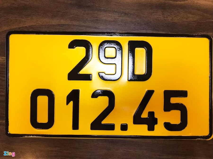 | Mẫu biển số xe nền vàng, chữ và số màu đen sẽ được áp dụng cho xe kinh doanh vận tải từ 1/8. Ảnh: H.Q. |