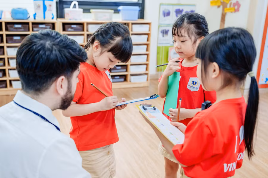 Trong giờ học, giáo viên luôn đồng hành cùng các em và kịp thời đưa ra các chỉ dẫn hoặc hỗ trợ khi cần thiết. Hoạt động này không chỉ nhằm xây dựng kỹ năng Toán học mà còn giúp các Vinser nhí phát triển một loạt kỹ năng nhận thức và kỹ năng giao tiếp, từ đó khuyến khích cách tiếp cận học tập chủ động, khơi gợi tính tò mò mà học sinh có thể áp dụng cho các lĩnh vực khác nhau.