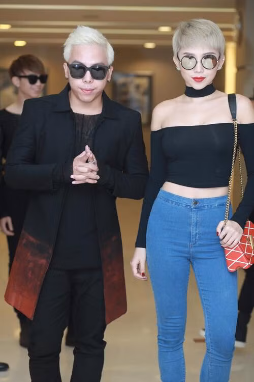 Tóc Tiên tự tin khoe vai trần sánh bước bên Hoàng Touliver tại Hà Nội.