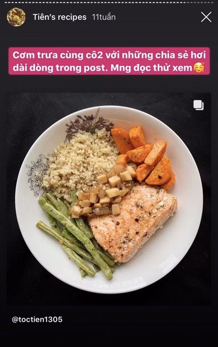 Nếu theo dõi Instagram của Tóc Tiên bạn sẽ thấy cô nàng rất chăm chỉ nấu ăn ở nhà và thường xuyên chia sẻ chúng cho dân tình ngưỡng mộ. Nhìn vào những mâm cơm hàng ngày hay những món ăn cầu kỳ, nhiều người phải thốt lên khen ngợi: ""Cô nàng đảm đang nhất Vbiz đây chứ đâu!"".