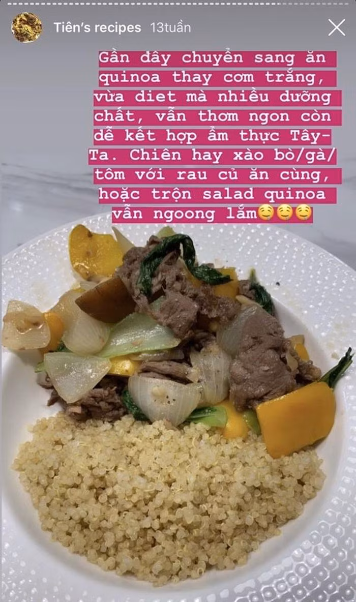 Ngoài ra, nếu theo dõi Tóc Tiên có thể biết cô nàng là một người có chế độ ăn vô cùng lành mạnh. Cụ thể nữ ca sĩ thường ăn sáng và trưa với hạt diêm mạch (quinoa). Hạt diêm mạch được biết đến như 1 loại hạt ngũ cốc có lợi cho sức khỏe.
