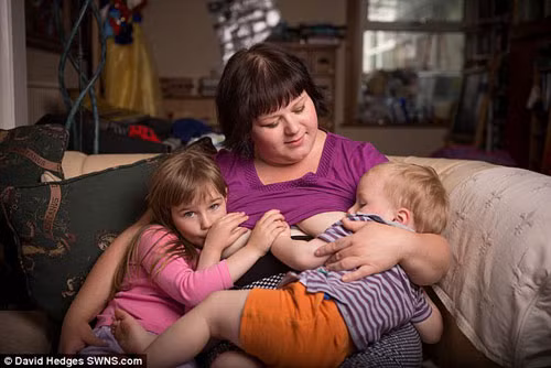 Bà mẹ 36 tuổi này còn có một bé trai khác được 2 tuổi và hiện tại cô đang cho cả hai con bú mẹ 3 lần mỗi ngày và ngủ chung giường với chúng.