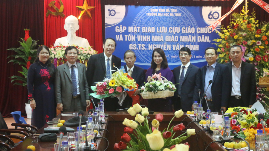 Đặc biệt, nhân dịp này, Trường Đại học Hà Tĩnh tôn vinh và chúc mừng GS.TS Nguyễn Văn Đính – Giảng viên cao cấp vừa được Chủ tịch nước cộng hòa XHCN Việt Nam phong tặng danh hiệu Nhà giáo nhân dân năm 2017.