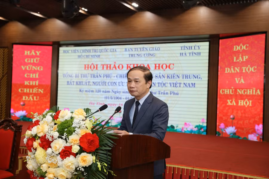 Chiều 16/4, nhân Kỷ niệm 120 năm ngày sinh Tổng Bí thư Trần Phú (1/5/1904-1/5/2024), tại TP Hà Tĩnh, Học viện Chính trị Quốc gia Hồ Chí Minh, Ban Tuyên giáo Trung ương và Tỉnh ủy Hà Tĩnh tổ chức Hội thảo khoa học “Tổng Bí thư Trần Phú - Chiến sĩ Cộng sản kiên trung, bất khuất, người con ưu tú của dân tộc Việt Nam”.