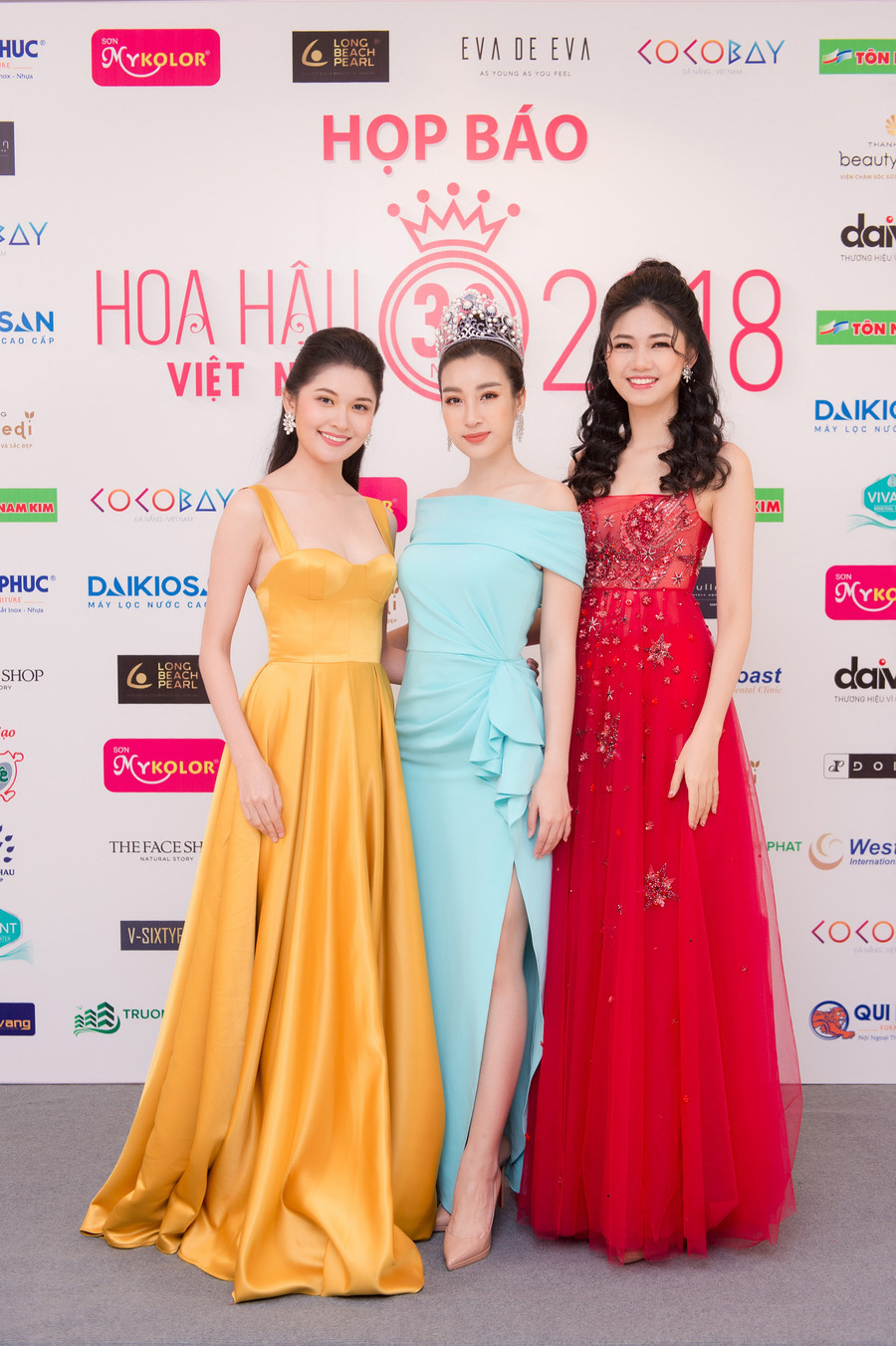 Hoa hậu Đỗ Mỹ Linh, Á hậu Thanh Tú, Á hậu Thùy Dung cùng hội ngộ trong buổi họp báo. Ngoài công việc, họ luôn giữ mối liên lạc và khá thân thiết với nhau.