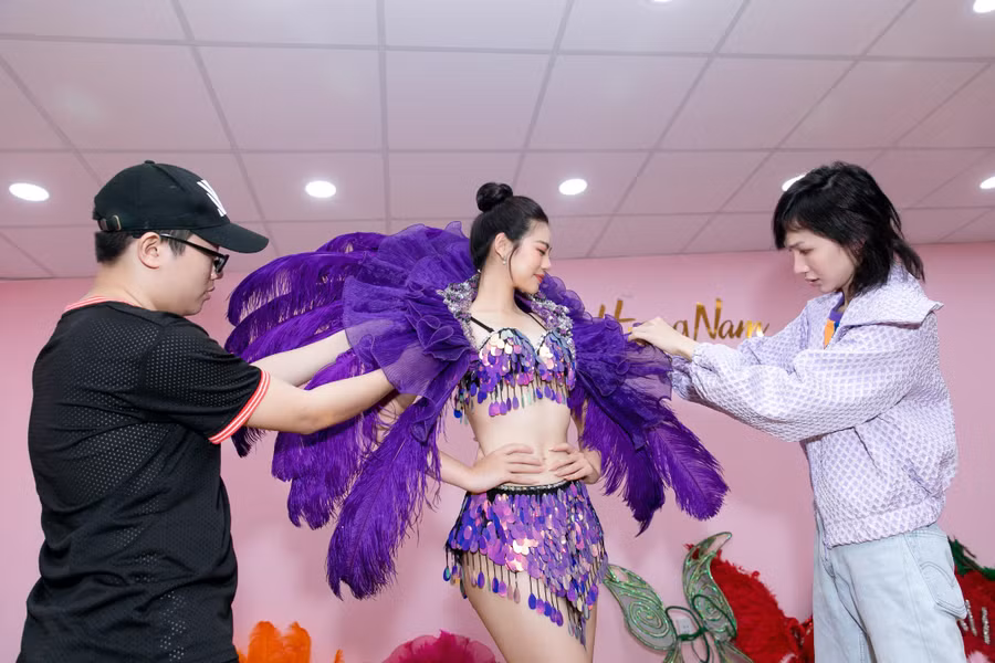 Để sẵn sàng cho màn trình diễn vô cùng hoành tráng trên đường phố, các thí sinh đã có buổi thử đồ trong trang phục carnival đến từ NTK Jessica. Đây cũng chính là cái tên làm nên thành công cho đêm thi Người đẹp Biển của cuộc thi Hoa Hậu Việt Nam 2020 tại Thành phố Vũng Tàu với bộ sưu tập rực rỡ sắc màu.