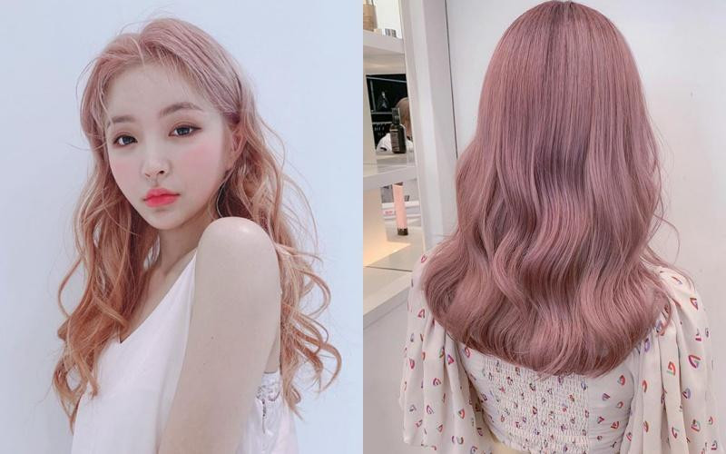 Đây là màu nhuộm được các thần tượng Hàn Quốc ưu ái lựa chọn. Khá giống với màu tóc nâu trà sữa và cam cháy, tóc nâu hồng cũng cần nâng tông nhẹ để ánh hồng trở nên rõ nhất. Màu tóc này dành cho những cô bạn thích phong cách nữ tính, ngọt ngào nhưng không làm mất đi vẻ thời thượng, chất lừ.