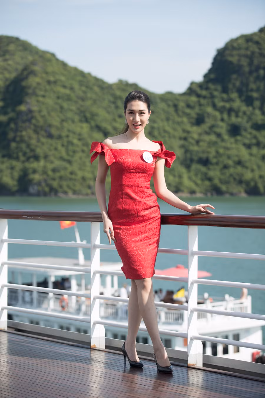 Sundeck (boong tàu cao nhất) cũng chính là địa điểm "sống ảo" lý tưởng cho các thí sinh tự tin khoe dáng giữa hoàng hôn trên vịnh.
