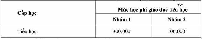 Quy định mức học phí với giáo dục tiểu học công lập chưa tự bảo đảm chi thường xuyên từ năm 2022-2023: