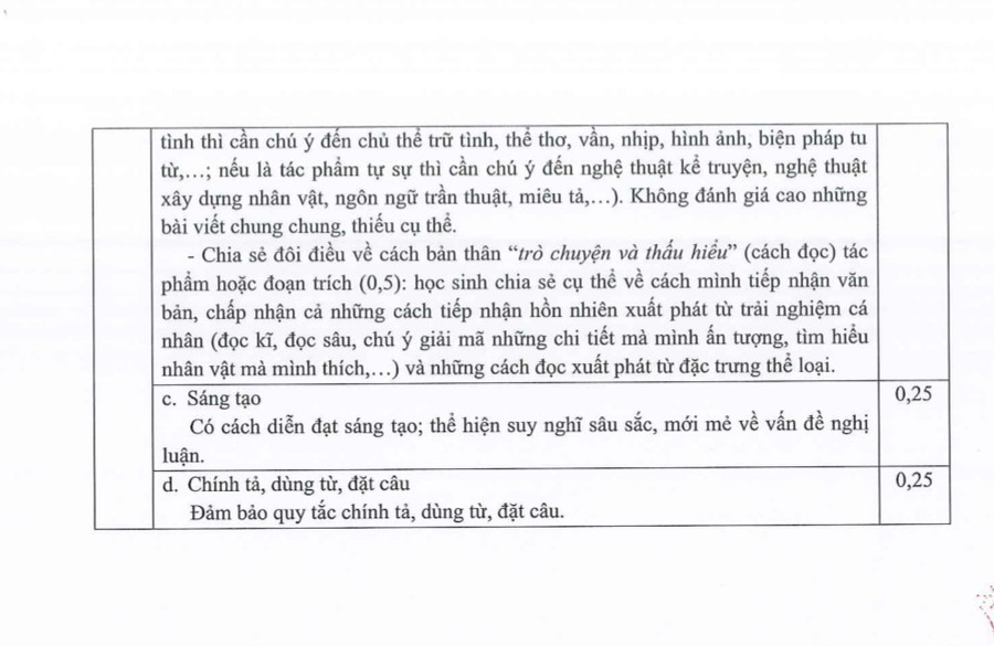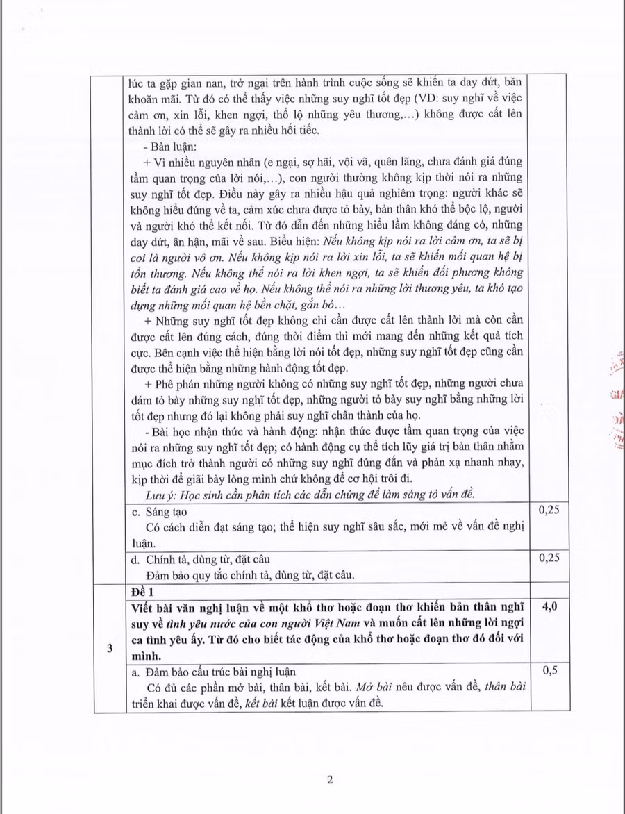 Đáp án môn Ngữ văn: