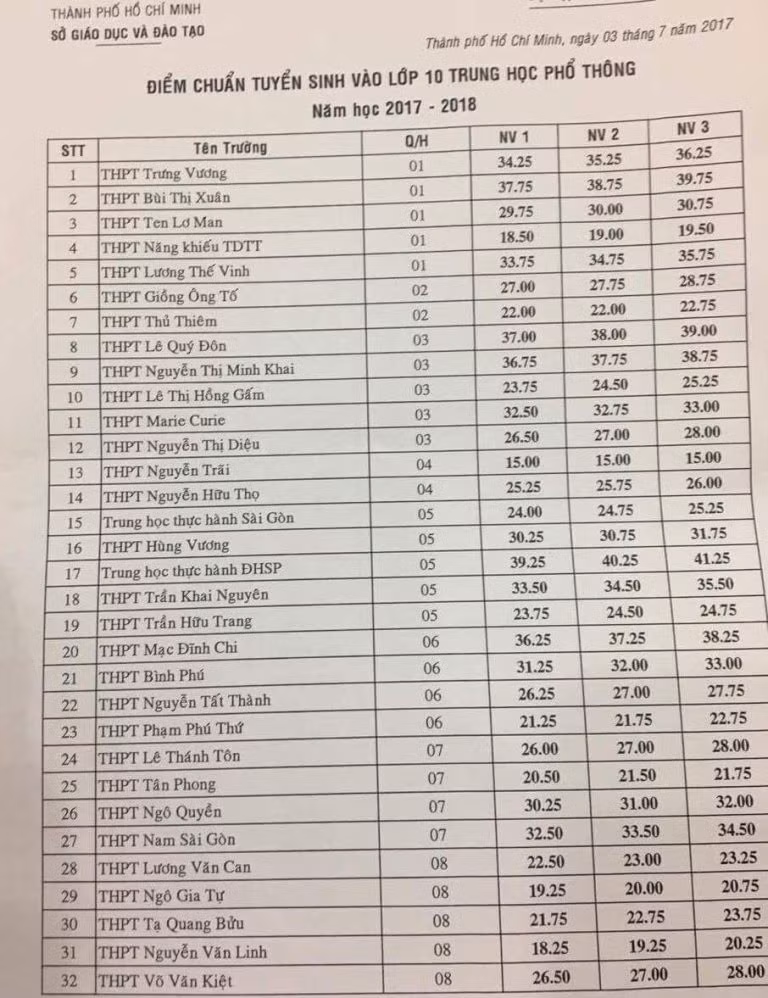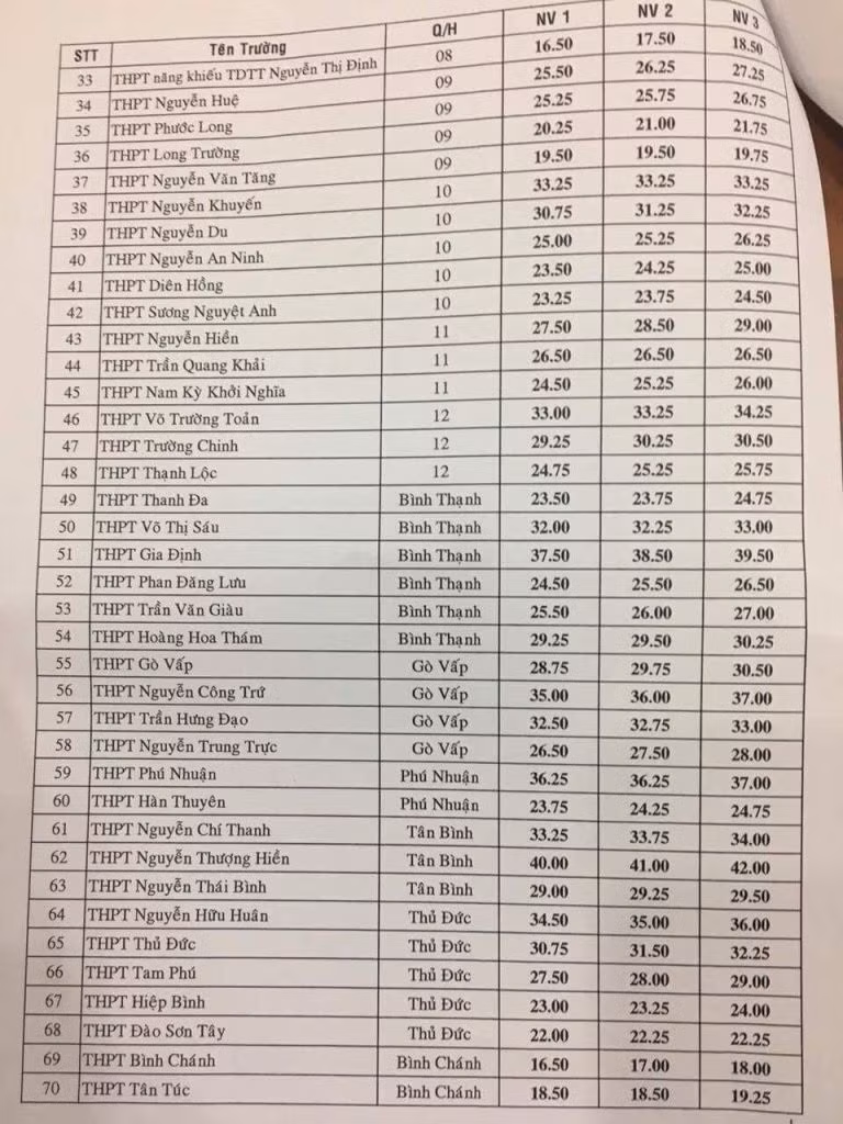 Xem chi tiết điểm chuẩn vào lớp 10 của các trường THPT công lập trên địa bàn TP Hồ Chí Minh TẠI ĐÂY: