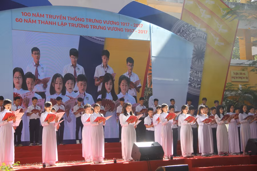 Tại buổi lễ, cô Trương Thị Bích Thủy - Hiệu trưởng nhà trường - đã cùng ôn lại truyền thống tốt đẹp, hào hùng của tổ tiên, của Hai Bà Trưng - danh nhân lịch sử mà trường được vinh dự mang tên. Đồng thời gửi lời tri ân tới các thế hệ giáo viên, học sinh đã tiếp nối và làm rạng danh truyền thống của ngôi trường cùng những thành tích dạy và học của thầy trò Trường Trưng Vương hiện nay.