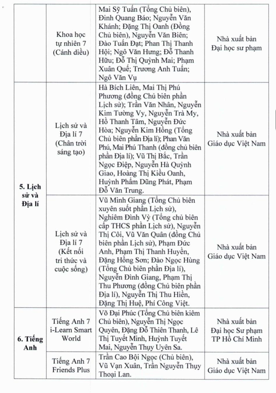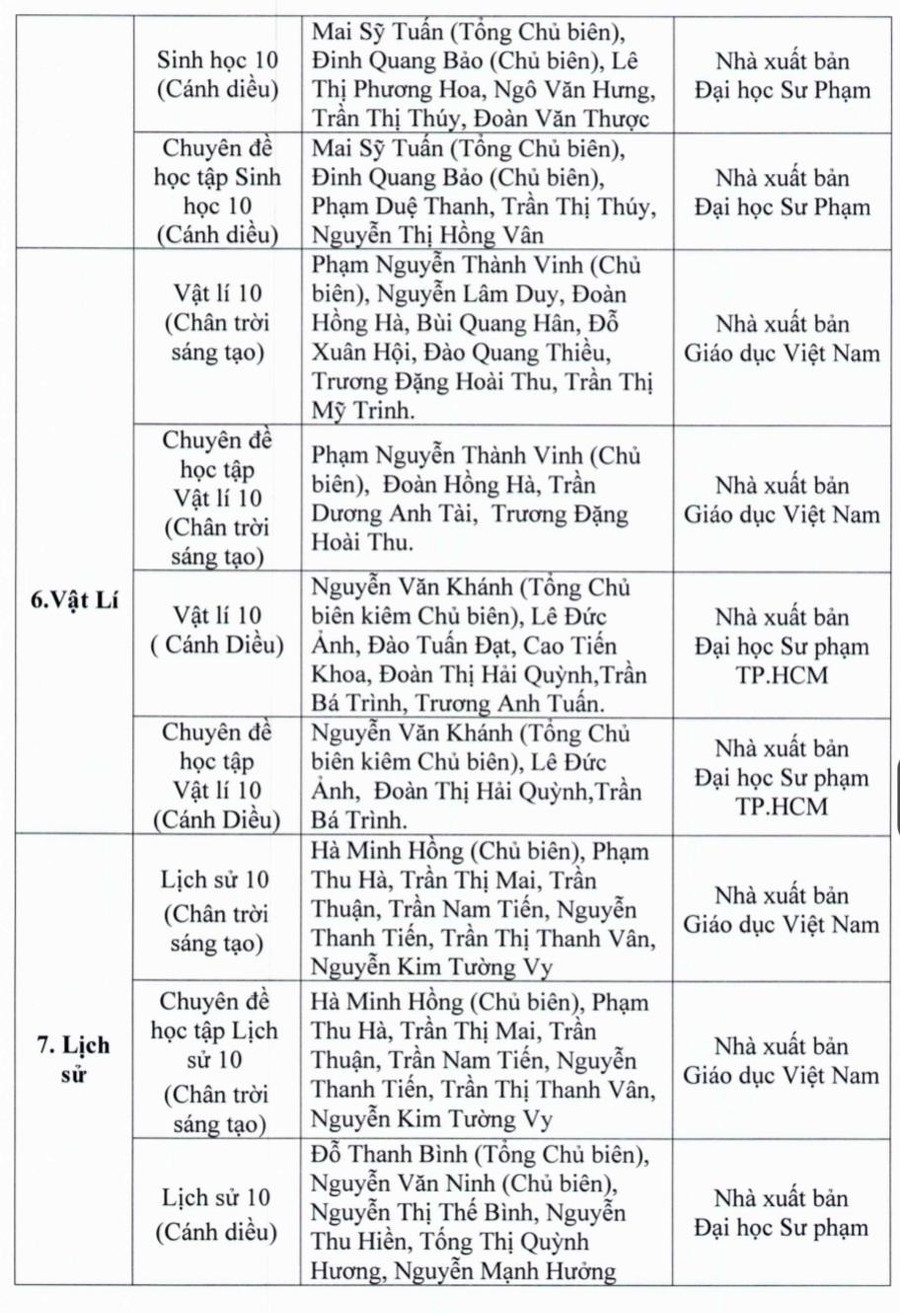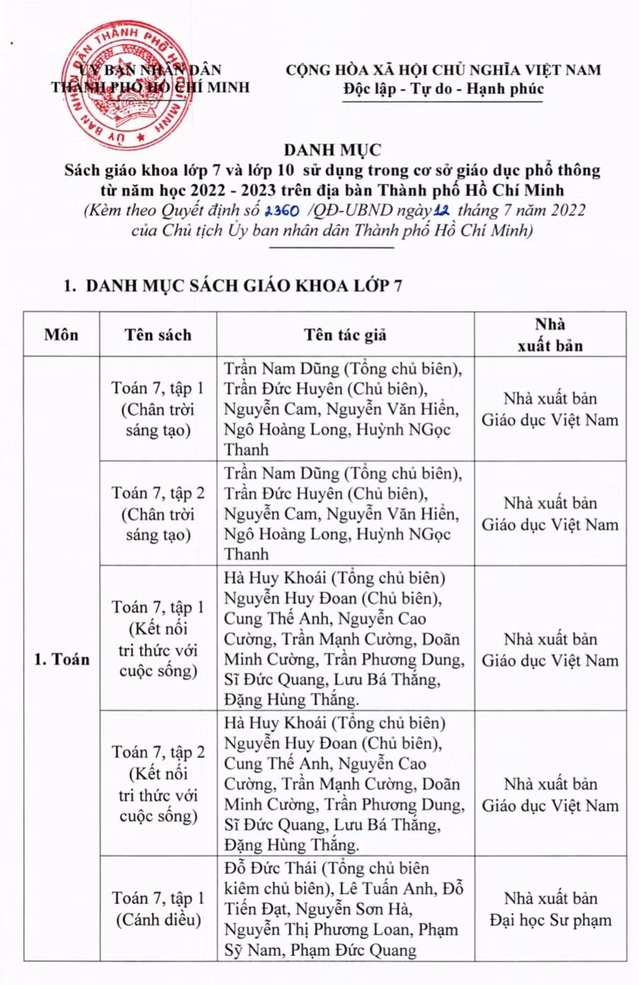 | Danh mục sách giáo khoa lớp 7, 10 sử dụng từ năm học 2022-2023 tại TPHCM. |