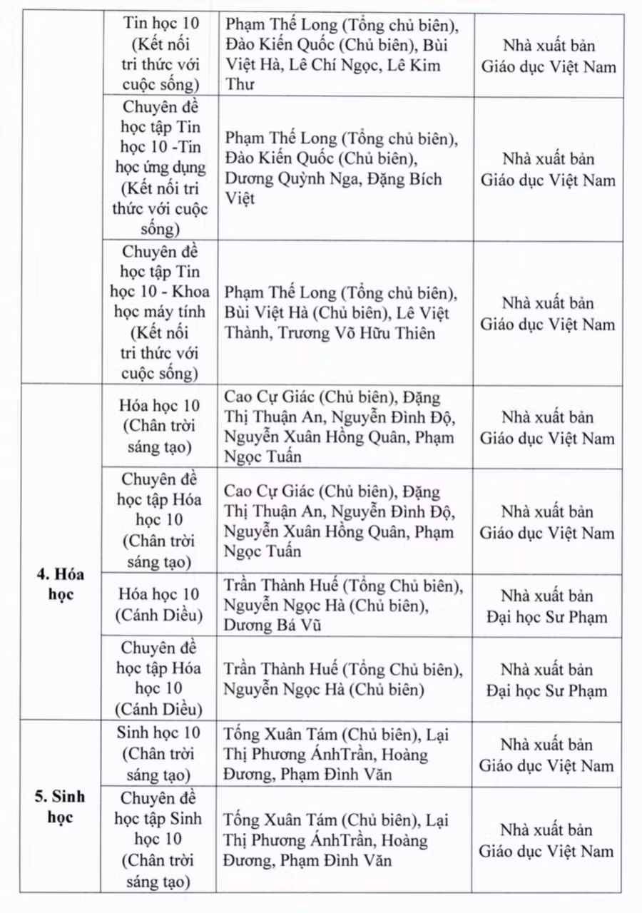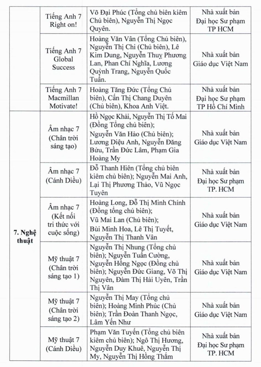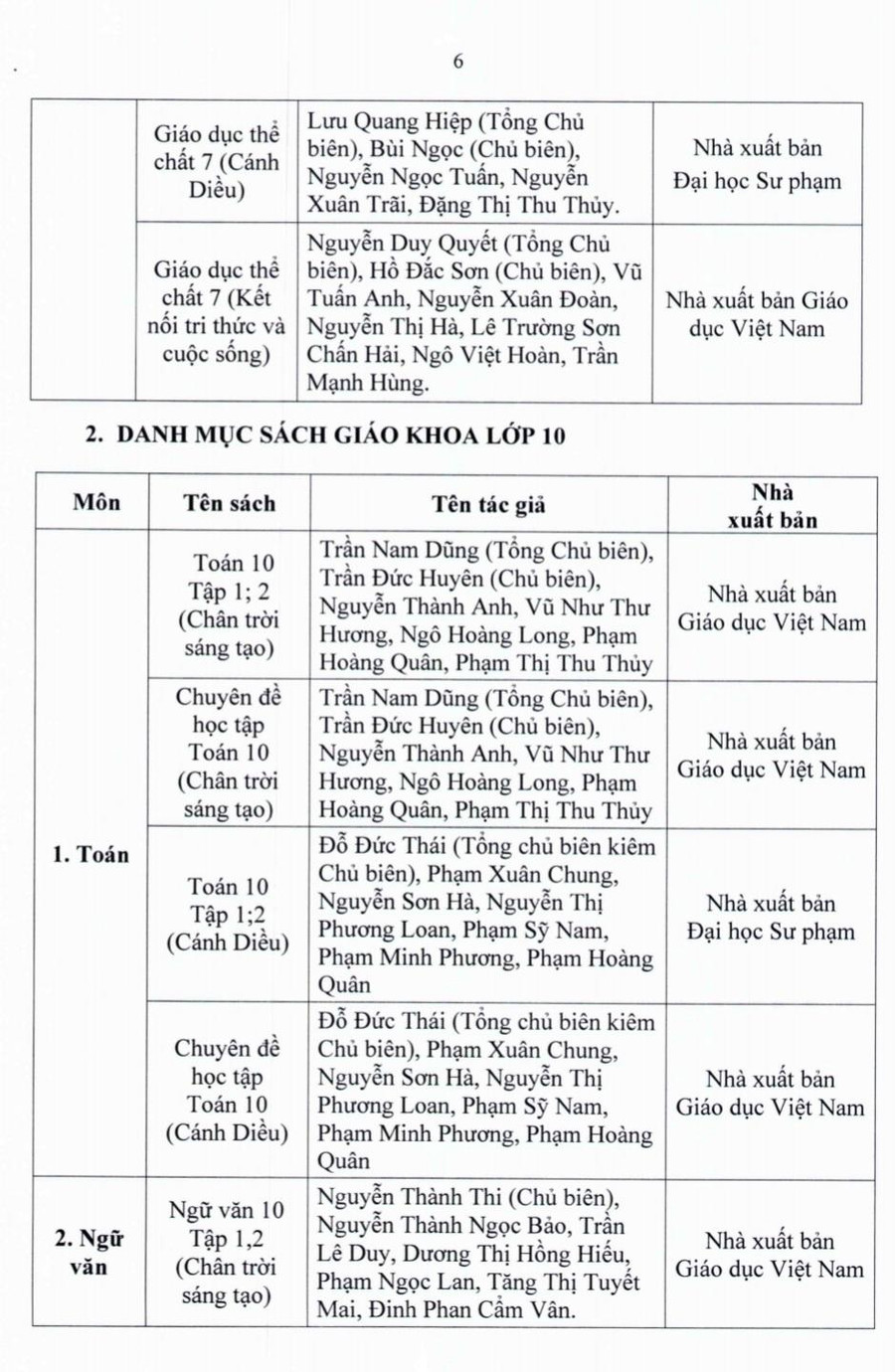 | Danh mục sách giáo khoa lớp 7, 10 sử dụng từ năm học 2022-2023 tại TPHCM. |