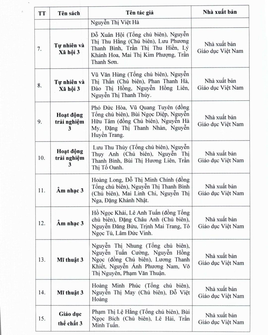 Đối với sách giáo khoa lớp 3 có 20/24 đầu sách được sử dụng trong các cơ sở giáo dục từ năm học 2022-2023 do nhà xuất bản Giáo dục Việt Nam phát hành.