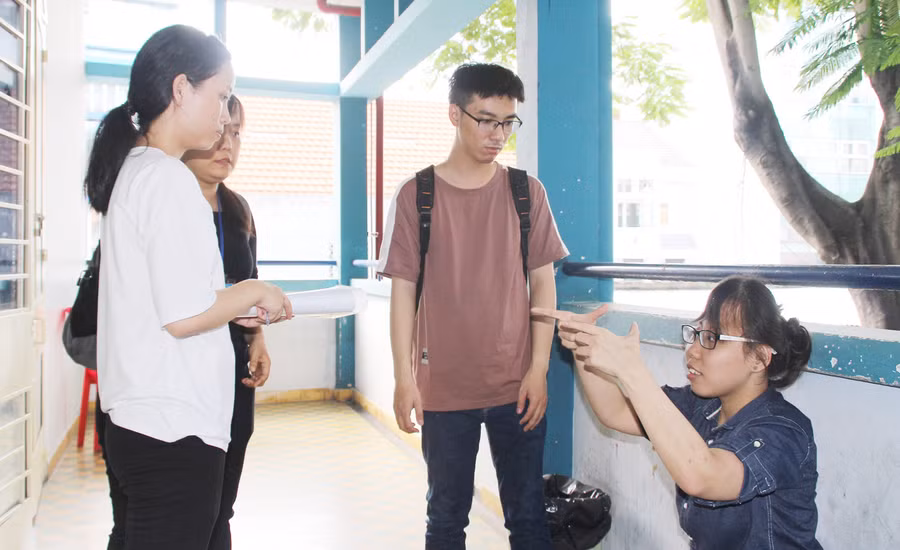 “Năm nay em đăng ký thi vào ngành GD đặc biệt, Trường ĐHSP TPHCM để trở thành cô giáo dạy cho trẻ khiếm thính và câm điếc” -Thủy chia sẻ với giọng đầy quyết tâm - “Ở trung tâm những năm trước có các bạn đậu vào ngành GD đặc biệt của Trường ĐHSP TPHCM, nên đó cũng là động lực để em đăng kí thi xét tuyển vào trường. Bản thân em học đều các môn chứ không giỏi hẳn môn nào. Năm nay em đăng kí thi để xét tuyển môn Văn, Sử, Địa”.