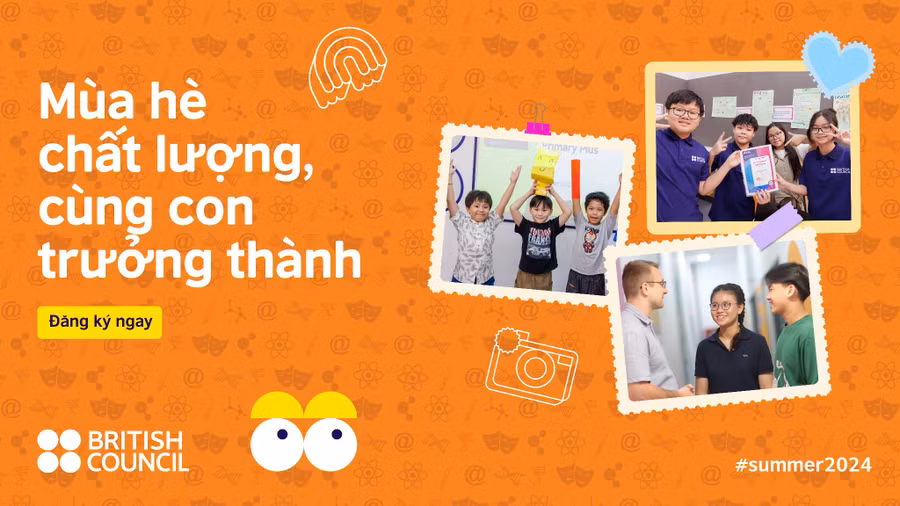 Năm nay, Hội đồng Anh chính thức triển khai khóa học tiếng Anh hè chất lượng Quality Summer với nhiều nội dung phong phú dành cho học viên từ 5–17 tuổi. Mục tiêu của khóa học là hỗ trợ cha mẹ cho trẻ một mùa hè đúng nghĩa, cùng Hội đồng Anh phát triển kỹ năng tiếng Anh, kỹ năng mềm và kiến thức xã hội cần thiết để chuẩn bị bước ra thế giới.