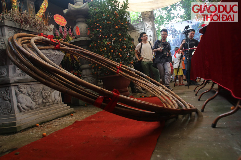 | Ngay từ sáng phần lễ được tổ chức từ trong khu vực làm lễ sau đó cây song được các đội đưa ra ngoài để bắt đầu kéo co |