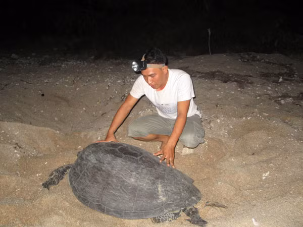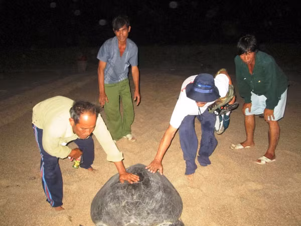 Họ tham gia với tinh thần tự nguyên (với mức hỗ trợ 500.000 đồng/tháng), hàng đêm âm thầm cùng cán bộ Vườn quốc gia Núi Chúa giúp rùa vượt cạn.