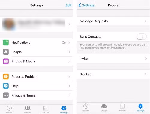Tương tự như thiết bị Android, bạn cũng cần phải khởi chạy Facebook Messenger. Lúc này, bạn hãy nhấn vào nút Setting - "Cài đặt" > People - "Danh bạ"/ "Mọi người > Messenger Request - "Tin nhắn đang chờ".