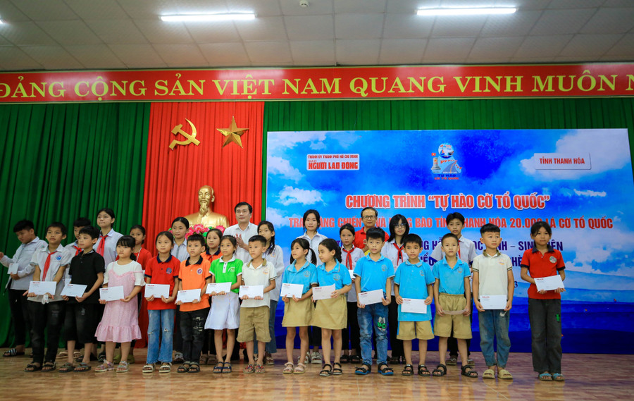 Song song với việc trao cờ Tổ quốc, Báo Người Lao động cũng tặng ảnh chân dung Chủ tịch Hồ Chí Minh cùng nhiều học bổng cho con em ngư dân, con em đồng bào dân tộc thiểu số, nhiều phần quà có ý nghĩa cho bà con ngư dân vùng biển đảo và đồng bào vùng biên giới.