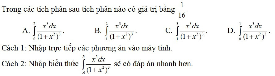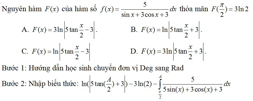 Trong đó: f là hàm số cần xác định nguyên hàm. Fi(x) là các phương án đã cho.