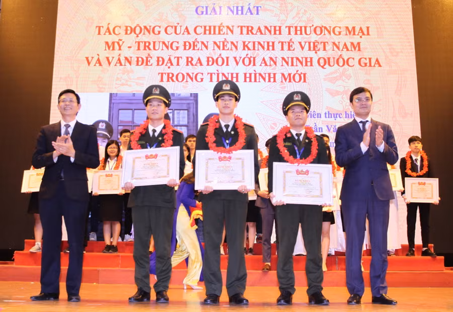 9. Tác động của chiến tranh thương mại Mỹ - Trung đến nền kinh tế Việt Nam và vấn đề đặt ra đối với an ninh quốc gia trong tình hình mới của nhóm sinh viên: Trần Văn Dũng, Mã Trung Hữu, Nông Văn Hoàng (Học viện An ninh nhân dân)
