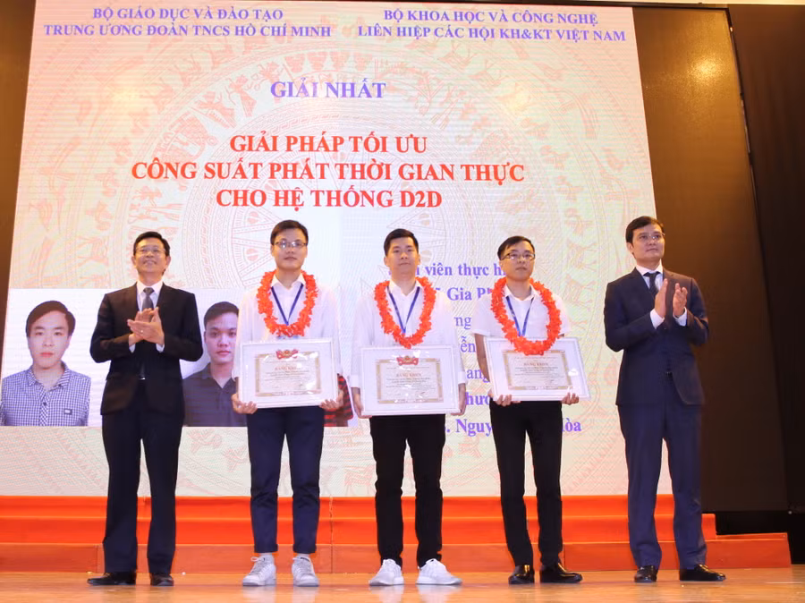 1. Giải pháp tối ưu công suất phát thời gian thực cho hệ thống D2D của nhóm sinh viên: Vũ Gia Phát, Trương Anh Quân, Nguyễn Xuân Tùng, Lê Quang Huy (ĐH Bách khoa Hà Nội)