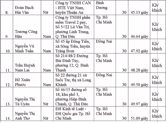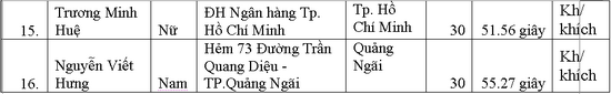 Dưới đây là danh sách 16 thí sinh đạt giải: