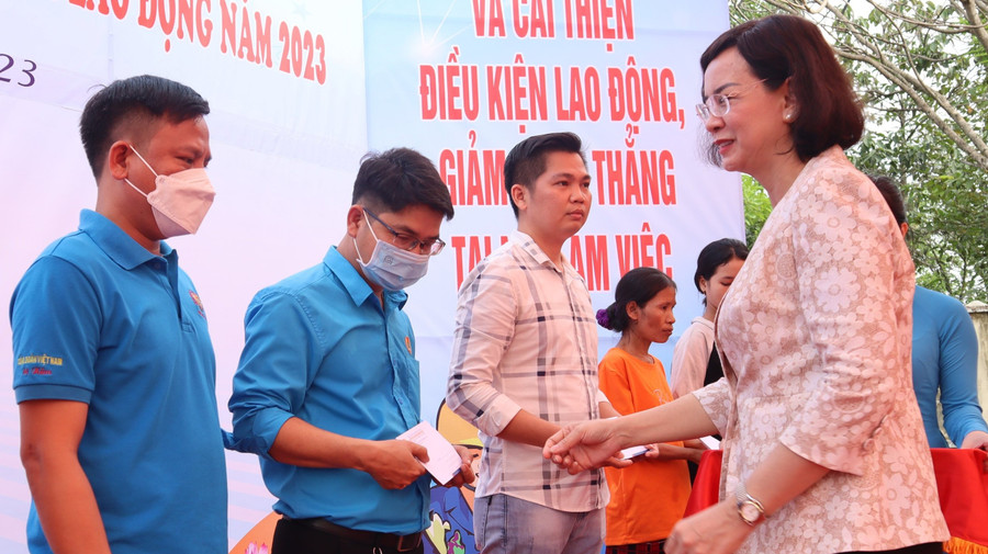Đặc biệt, Liên đoàn Lao động tỉnh đã trao quà cho 28 công nhân lao động bị tai nạn lao động, bệnh nghề nghiệp, mỗi phần quà gồm tiền mặt và nhu yếu phẩm trị giá hơn 1 triệu đồng.