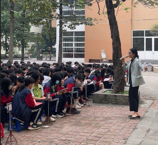 Cô Ngân hăng say chia sẻ với các bạn học sinh