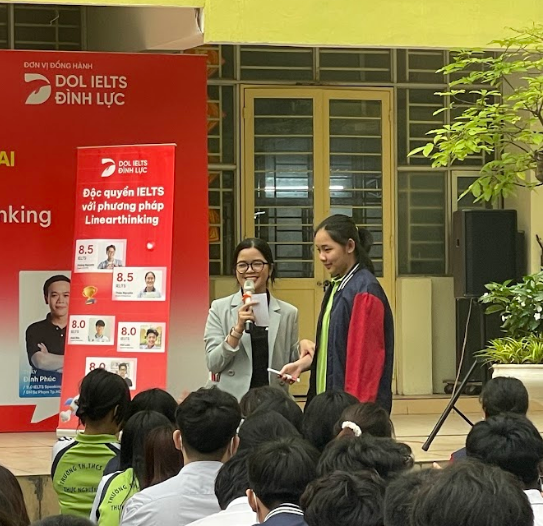 Trong chương trình, các bạn học sinh đã được nghe cô Ngân chia sẻ tổng quan về phương pháp Linearthinking mà DOL đang hướng tới, cách áp dụng “bí kíp” siêu đỉnh này vào việc học tiếng Anh nói chung hay quá trình ôn luyện IELTS nói riêng ra sao. Làm thế nào để có thể ghi nhớ từ vựng và sử dụng các từ đó vào bài thi hay đời sống giao tiếp thường ngày một cách tự nhiên nhất.