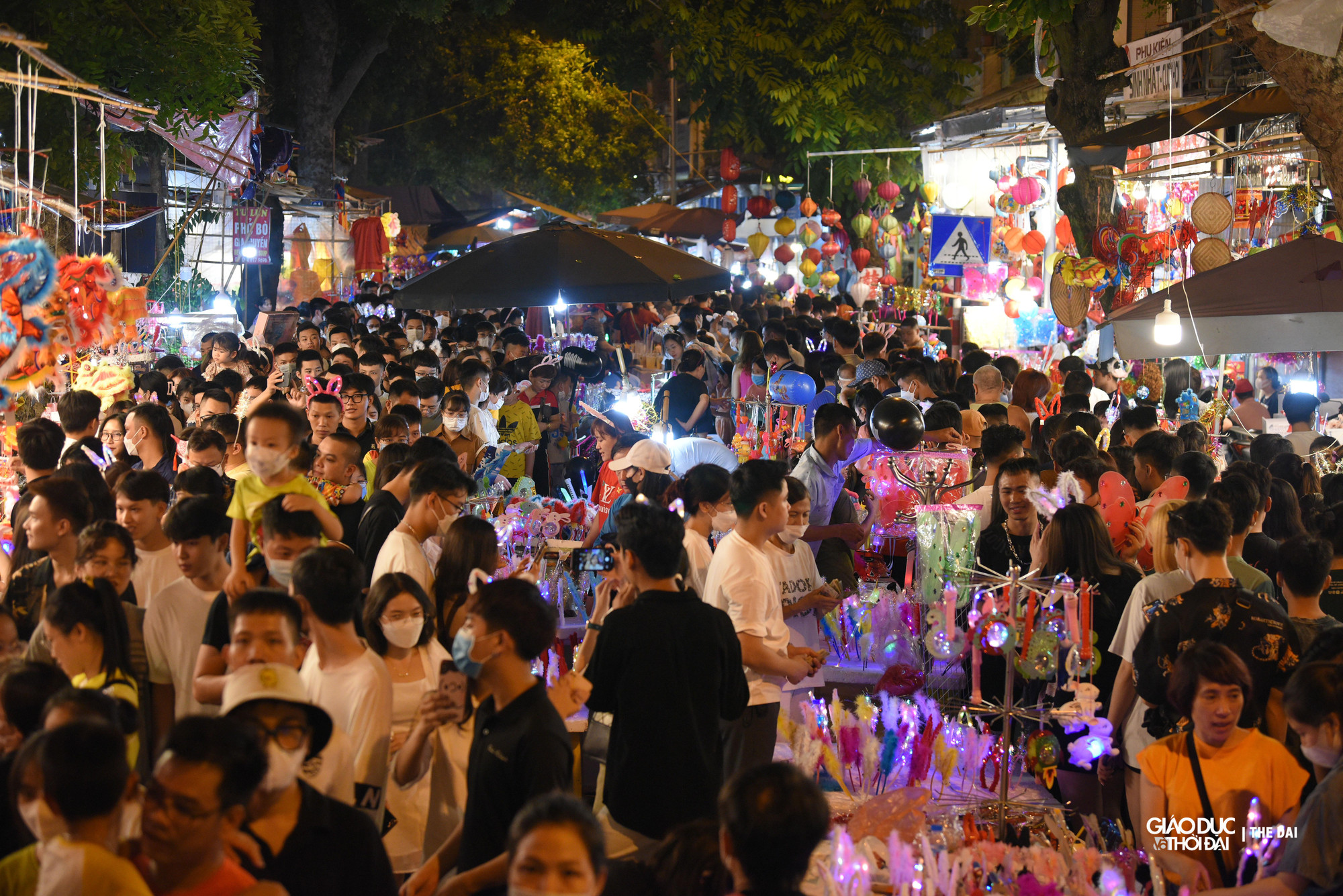 | Hàng ngàn người chen chân chụp ảnh, mua các món đồ chơi, đồ trang trí Tết Trung thu. |