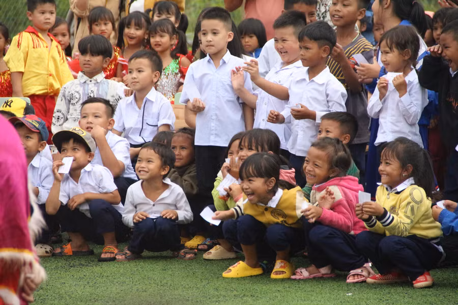 | ...và nụ cười hân hoan của học trò vùng khó khi nhận được những món quà ý nghĩa. |