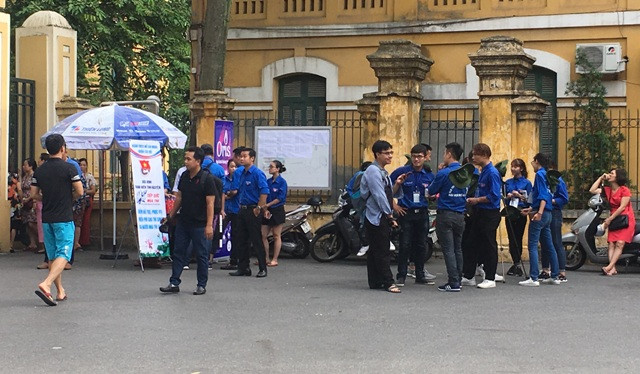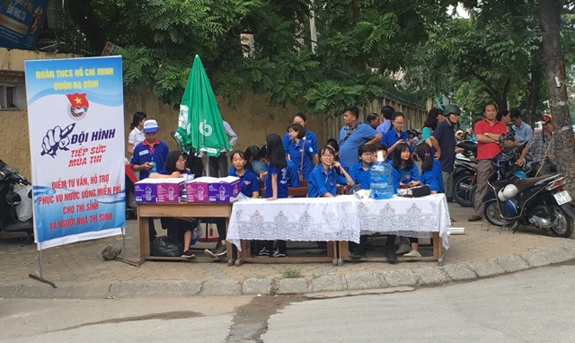 Hình ảnh sinh viên tình nguyện tại 1 số điểm thi ở Hà Nội: