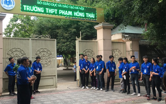Tại điểm trường THPT Nguyễn Trãi, THPT Phạm Hồng Thái, THPT Phan Đình Phùng, THPT Chu Văn An, các thí sinh đã vào phòng thi theo đúng thời gian quy định. Phía ngoài cổng, màu áo xanh quen thuộc của sinh viên tình nguyện luôn xếp thành hàng dài để động viên tinh thần cho các em.