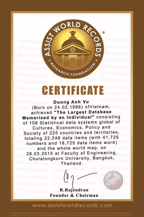 Anh Vũ vừa được ba tổ chức kỷ lục thế giới xác nhận khả năng ghi nhớ
