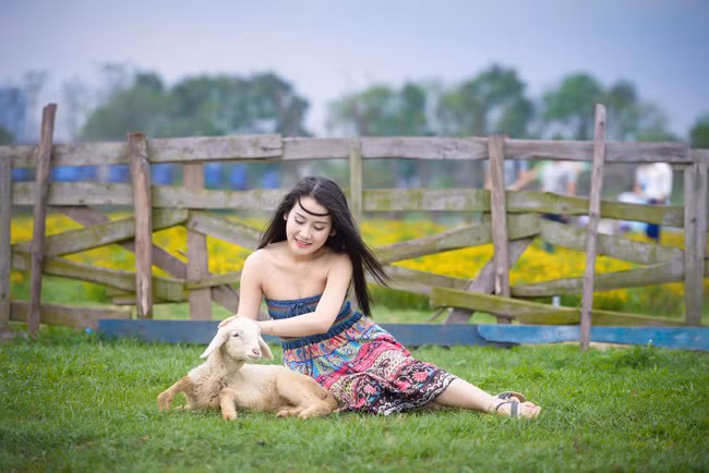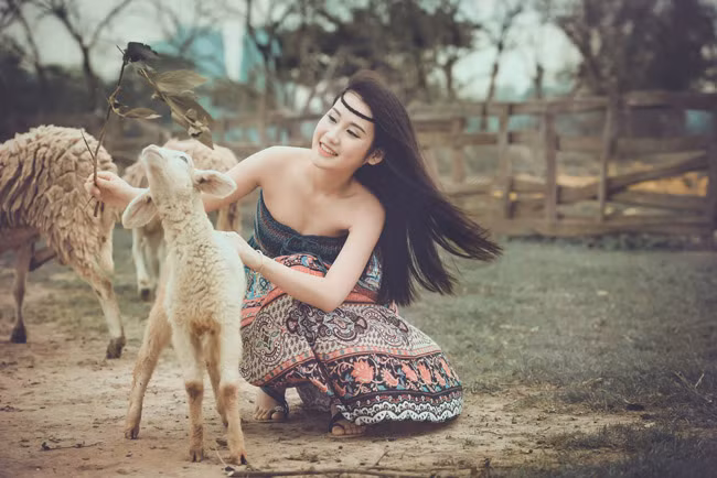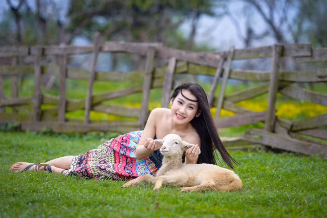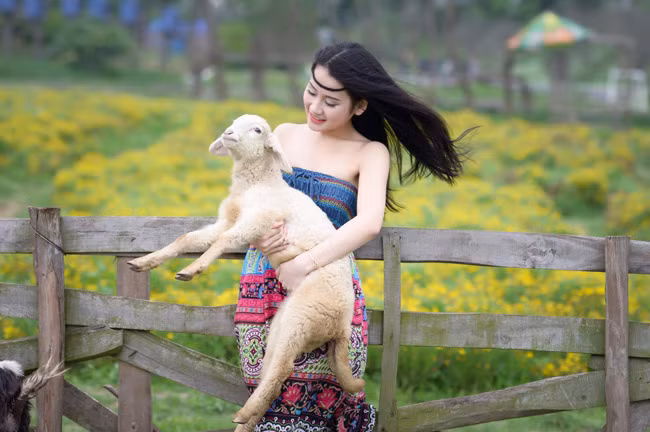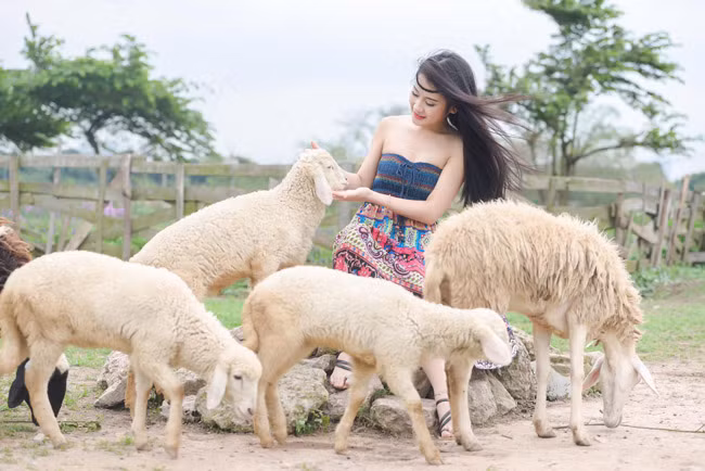 Theo Anh Phương, để có được những shoot hình đẹp bên cừu trắng, không cần tạo dáng quá cầu kỳ, chỉ cần vui chơi với chúng.